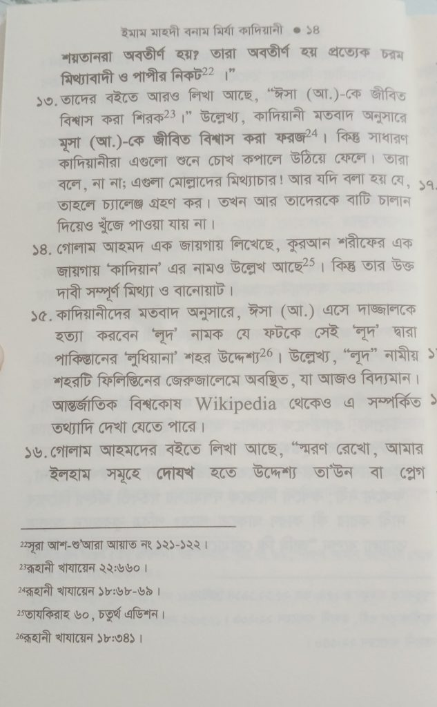 মির্যা গোলাম আহমদ কাদিয়ানীর রচিত ‘বারাহীনে আহমদীয়া’ চতুর্থ খন্ড; কাদিয়ানীর রচনাসমগ্র ২৩ খন্ডে প্রকাশিত- রূহানী খাযায়েন ১/৫৯৩।