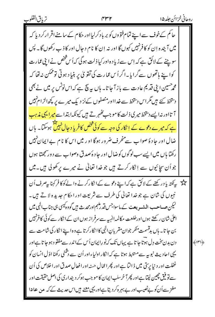 মির্যা গোলাম আহমদ কাদিয়ানীর রচিত ‘বারাহীনে আহমদীয়া’ চতুর্থ খন্ড; কাদিয়ানীর রচনাসমগ্র ২৩ খন্ডে প্রকাশিত- রূহানী খাযায়েন ১/৫৯৩