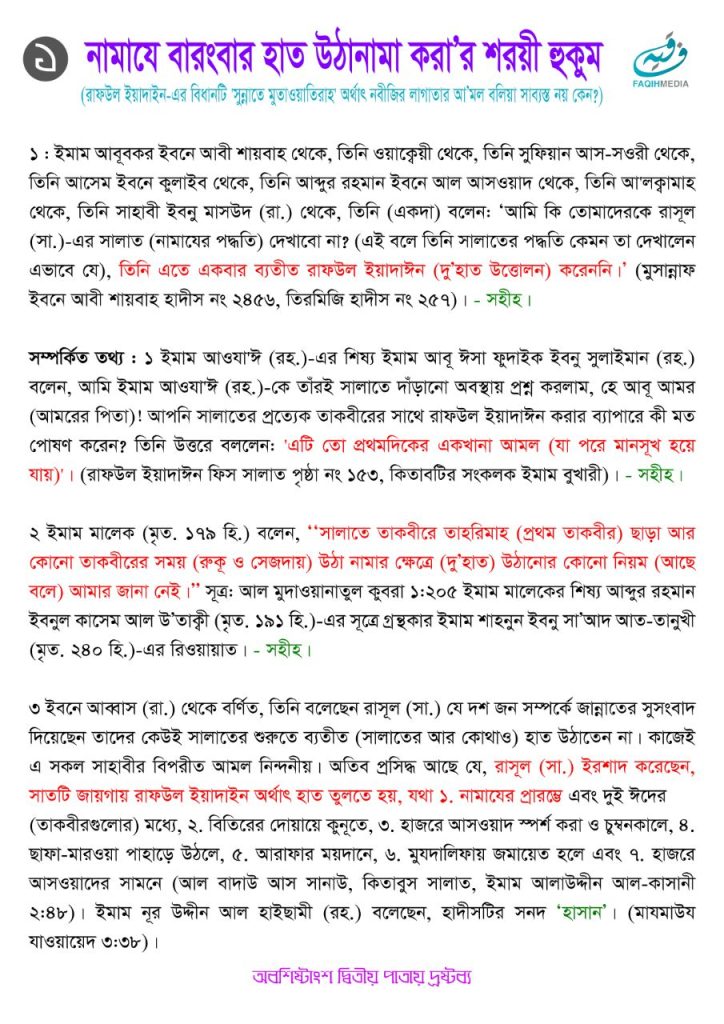 হাদীসের প্রাসঙ্গিক অংশ ও বাংলা অনুবাদ :