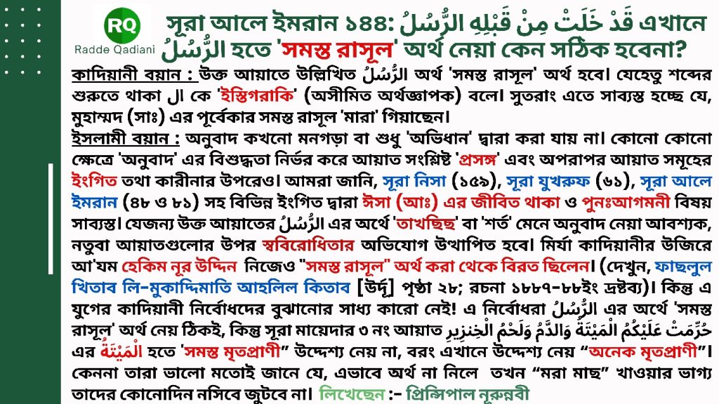 ৪। বাংলাদেশে কাদিয়ানীরা জাতীয় দৈনিক গুলোতে সম্পূর্ণ পৃষ্ঠা ব্যাপী ক্রোড়পত্র প্রকাশ করে থাকে। খতমে নবুওয়তের হাইকমান্ড থেকে সেটির প্রতিউত্তরে আমরা কেন কোনো আপডেট দেখিনা। জাতীয় দৈনিক গুলোতে কি খতমে নবুওয়তের হাইকমান্ড থেকে পাঠানো কোনো ডকুমেন্ট প্রকাশ করতে অনিহা প্রকাশ করেছিল?