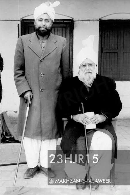 মির্যা নাসের আহমেদ এর পাশে কাদিয়ানীদের প্রধান মুনাজির জালাল উদ্দীন শামস দাঁড়িয়ে আছেন।