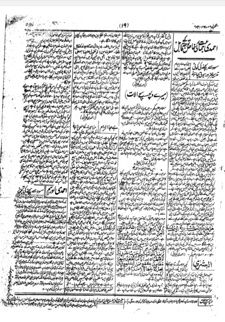 বলাবাহুল্য, উক্ত মির্যায়ী মুরিদের প্রশ্নের কোনো উত্তর দেয়ার দুঃসাহস করেনি পত্রিকাটির এডিটর। বরং সে পরোক্ষভাবেই বাহাউল্লাহ ইরানীর ‘মসীহ’ দাবী এবং দীর্ঘ সময় অব্দি জীবন লাভ করার ঐতিহাসিক ঘটনা মেনে নেয়। নিচে পুরো স্ক্রিনশট তুলে ধরা হল। বিজ্ঞ পাঠক, সময় নিয়ে পড়ে নেবেন।