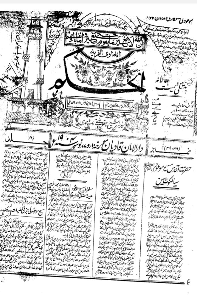 দৈনিক আল হিকাম পৃ-৯, তাং ১৭ নভেম্বর ১৯০৪ ইং।